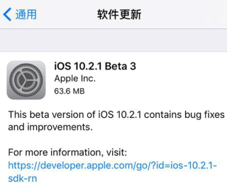 1月10日凌晨,苹果推送了iOS 10.2.1开发者预览版beta3固件更新,本次更新包大小为62.1mb左右,具体版本号为14D23。