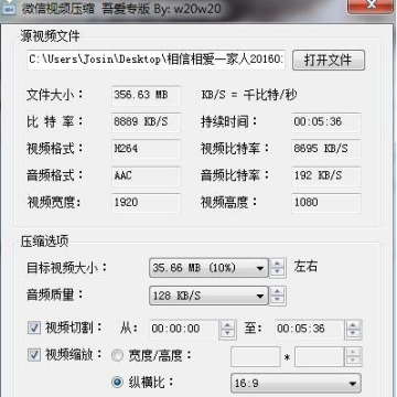 用法很简单,点击“打开文件”按钮选择一个视频文件,然后设置所需的压缩视频大小,最后点击“压缩”按钮开始视频压缩。