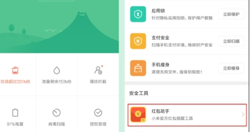 为了应对春节高峰,MIUI特地推出了2.0版的红包助手,在安全中心中即可开启使用。