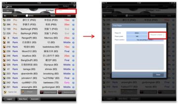(2)从用户列表申请:先切换到用户列表,点击对应的蓝色箭头按钮,点击“Request a Game”发送对局申请