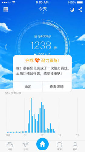 4.运动提醒:通过设定运动目标,时刻提醒每日运动量达标情况。