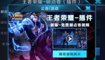 王者插件V5手机版是一款帮助王者荣耀手游玩家刷点券的手机软件。玩家可以通过此软件免费刷王者荣耀点卷,点券可以购买王者荣耀里所有道具、英雄、钻石等,有需要的用户可以下载使用。