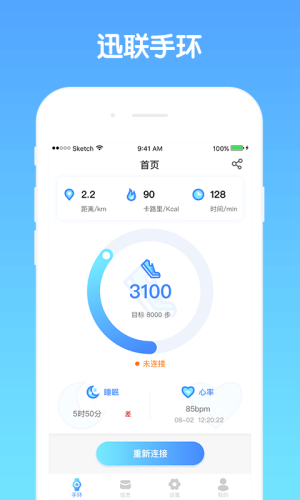 讯联手环是一款运动考勤手环,帮助你更好的坚持锻炼。只有每天坚持锻炼才能在软件上面进行打卡,有需要的朋友快来下载吧!