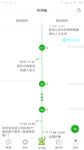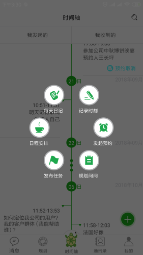 规划时间:日程管理、日记、时刻记录、约会、商务预约、任务发布、电子名片。