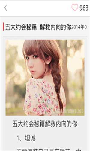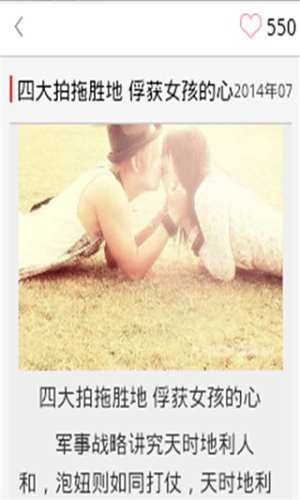 相信不少单身男士都十分的紧张,毕竟情人节这个东西过的好,就能够让你们更好的告别单身,这次为了你们着想就带来情人节约会技巧高级指南软件,在各方面告诉你如何做到完美,让女友对你能够更加的喜欢。想要获得就赶紧来此下载!