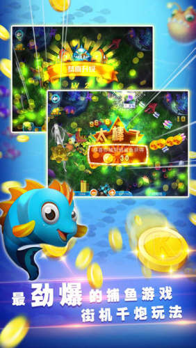2.街机千炮捕鱼游戏保留了传统街机版本的界面、玩法、得分方式等基础上,增加了更多刺激、好玩的网络元素。