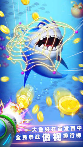 4.玩家进入游戏后,架好不同等级的游戏炮舰、运用不同威力的射击枪,子弹上膛,击获各式各样的海底生物,不同币值的鱼掉落可获宝石奖励,挑战任务还能领取在线礼包,瞄准随时出现的海底宝箱,惊喜更多!
