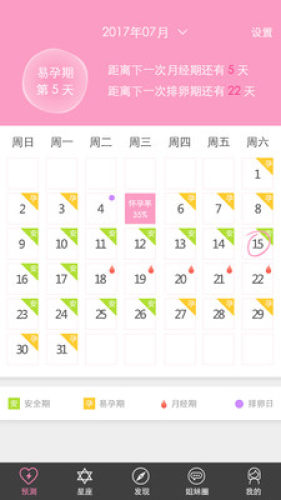 计算出当月及未来一个月的女性安全期、排卵期、月经期,应用简单,方便实用,能够帮助每一位女性朋友更好的保护自己的生理健康!