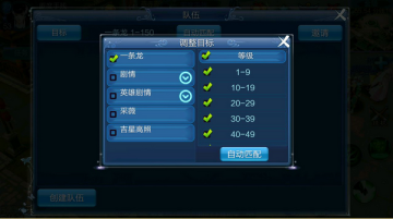 想组队做任务却没有认识的小伙伴?游戏中有强大的自动匹配功能,打开组队面板,在“目标”选择要参加的活动,就能一键组队!