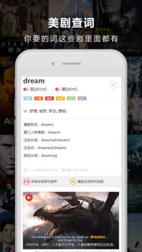 在这里查词,还能欣赏几段美剧。收录了人人影视字幕组十年来积累的原创字幕,为每个单词配以美剧原声、双语字幕为例句,带你体验地道纯正的英美文化。