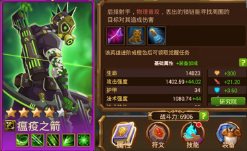 《MR魔法英雄》中,能够控场的英雄一般都是非常强力,瘟疫之箭不仅自身的伤害极高,且恶魔锁链的的禁锢对方能力更是让其有很强的可塑性,并且是很少几个在后期可以觉醒再度提升自身能力的角色,如果入手,尽管练起来。