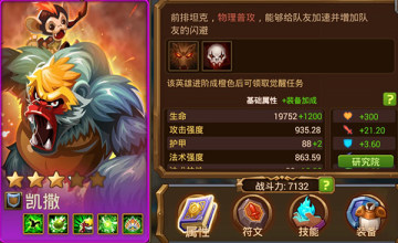 本作中最纯粹的坦克英雄,具有嘲讽、减伤、回血等一切适合坦克的技能,同时还能为友军提升攻击力,后期能够凭借觉醒再次变强,如果初期获得,那么恭喜你,你可能获得了本作中最强的单独坦克了,没错,他就是猴子请来的救兵。