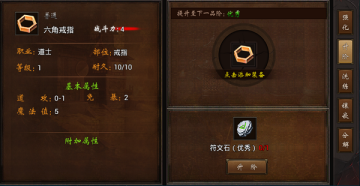 点击角色头像后,点击装备按钮,进入装备操作界面,点击升阶选项进入升阶操作界面。升阶过程需要消耗符文石,并且100%成功!