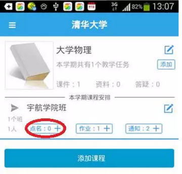 进入课程界面,点击您上课的班级下面的“点名”,进入点名功能。