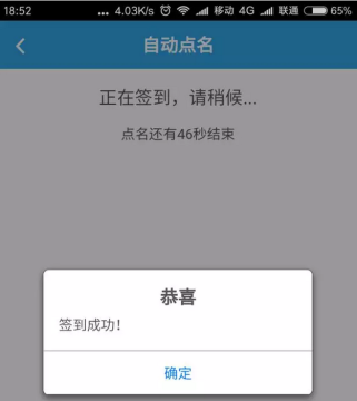 然后就是刷脸了,只要学生端手机上传网速大于10kB/s,刷脸验证过程小于10s哦!如果学生在点名结束前退出励志君,或者学生手机锁屏,系统有可能会判断该学生点名失败。
