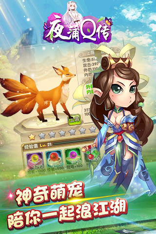 《夜蒲Q传》是一款3D武侠抢妹子卡牌手游,戏特色丰富多彩,宠物系统、家园系统、猎艳系统、炼化系统等等精彩的游戏玩法等待各位的加入。各种各样的阵容带给玩家各式各样的体验,创建自己的门派带领自己的兄弟抢夺风水宝地以及各式各样的宝物,待功成名就时退隐深山,做一名世外高人。还等什么?赶快加入《夜蒲Q传》争霸武林吧!
