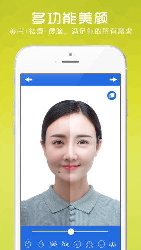 1、可挑选已有最美照片、或拍摄当前最佳状态,一键合成证件照 ;