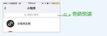在“微信首页——搜索”或“发现——小程序”中搜索“奇葩悦读”,进入即可使用。