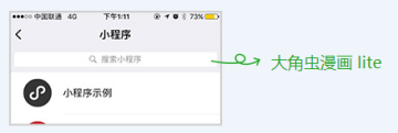 在“微信首页——搜索”或“发现——小程序”中搜索“大角虫漫画lite”,进入即可使用。