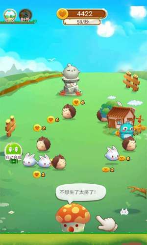 《快活农场》是一款十分轻松的休闲娱乐类游戏,游戏的玩法以放置合成为主,你需要不断点击小木屋来生成可爱的兔子,再将两只兔子合成出可爱的刺猬,以此类推,合成更高级的动物会给你带来更多的金币哦!喜欢的话就快来下载体验吧!