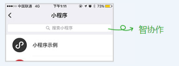 在“微信首页——搜索”或“发现——小程序”中搜索“智协作”,进入即可使用。