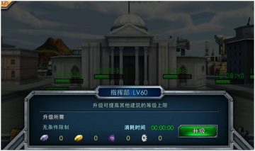 指挥部:优先升级指挥部后,才可以升级其他建筑。即其他建筑不可以高于指挥部的等级。
