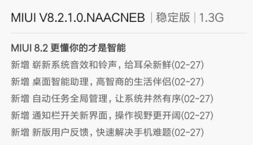 miui8.2.1.0.NAACNEB稳定版是MIUI8.2.1.0的第二代升级版,新增了多个智能应用。崭新的系统音效和铃声让你摆脱传统,桌面助理让你更方便,系统井然有序,还没有升级的小伙伴快来看看。