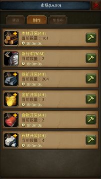 功能:消耗时间和部分资源,制作可以在特定时间内增加特定资源的物品。