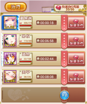 治疗会消耗金币和时间,正在治疗的斗娘是无法出击的。如果不想等时间的话,我们可以选择快速治疗哦,斗娘会立刻满血复活,又能上战场啦!