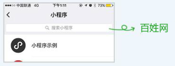 在“微信首页——搜索”或“发现——小程序”中搜索“百姓网”,进入即可使用。