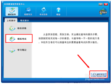 安装完成后,双击桌面上的“二级C上机”程序图标。在模拟系统界面中,我们可以根据自己的实际需要选择相应的类型进行训练。比如,我们想模拟“上机部分”环境,只需要选择“模拟考试”,然后点击“启动模拟环境”按钮