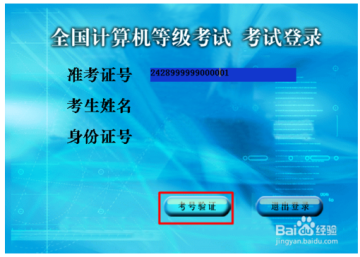 在“准考证号”输入柜中输入“2428999999000001”,点击“考号验证”按钮。
