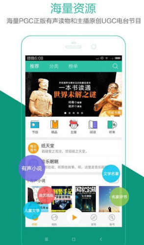 1.海量资源:懒人听书囊括《盗墓笔记》《鬼吹灯》有声小说、《红楼梦》《西游记》文学名著、单田芳郭德纲名家评书、《晓说》《冬吴相对论》娱乐综艺等十几个大类海量高清有声阅读资源,最新资源每天更新。