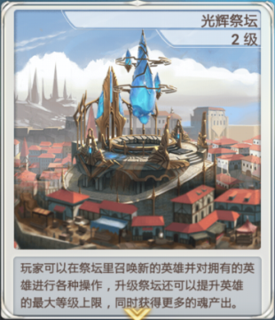 产出及临时储存魂的场所。并且可以召唤新英雄和提升英雄等级上限。