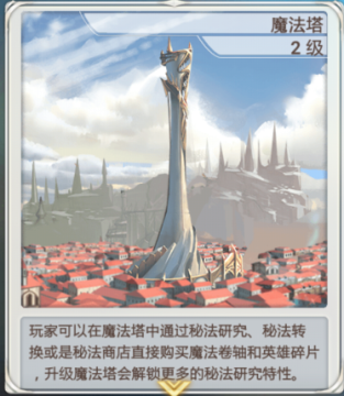 可以进行魔法研究开发魔法让英雄学习,并且有几率产出英雄碎片。