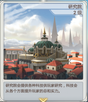 研究院提供四大黑科技供玩家研究,可以从各方面提升玩家的总和实力。