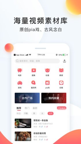 看着不过瘾?自己也来玩玩,每天更新超多优质素材,加上便捷的配音功能,让你轻松搞定一部属于自己的声音大作!