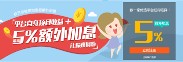 劲爆新手加息: 在风车理财上投资管理所有标的 ,可以享受一定额度投资平台本身标的8-18%年化收益上 + 外加风车理财加息最高 5% 的收益,让您方便理财的同时赚到嗨。