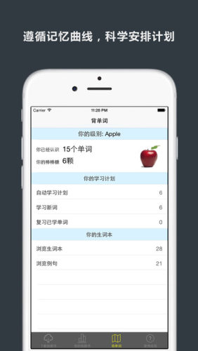 5.背单词功能:按照记忆曲线设置单词学习计划,同时呈现视频中的原句,唤醒你的快乐记忆。。