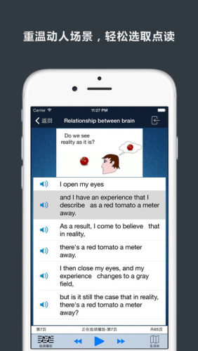 1.视频书点读:视频截图+文字方式展现,可以逐句点读,在情境中学习。