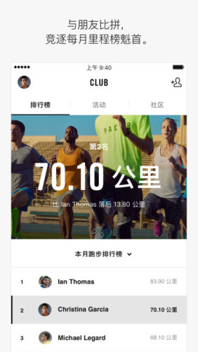有了个性化 Nike+ Run Club 播放列表、朋友的实时助威和来自优秀运动员的鼓励, 你就会更有动力达成更大的目标。