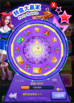 3、玩家转动一定次数,系统随机开奖一次,抽取在期间玩转盘的玩家,独得500万大奖