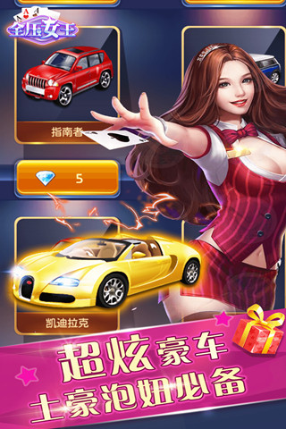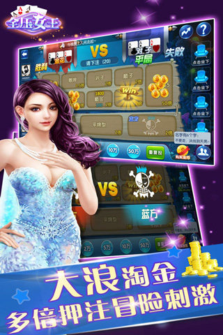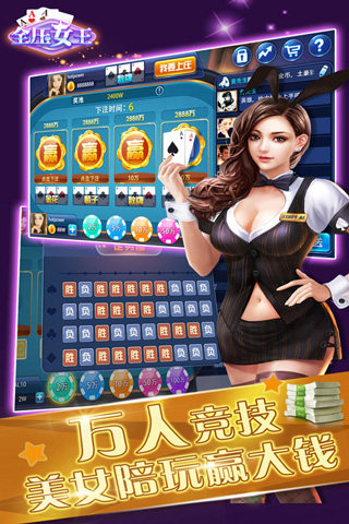 全压女王公益服是一款休闲娱乐类型的棋牌手游,经典的棋牌对决玩法,玩家在游戏中参与的是一场关于智慧和运气的比拼,当然,胆量也是很重要的因素,幸运大转盘,说不定一夜暴富就是你哟!本版手游充值比例1:1:10000,翻倍卡*15、禁比卡*15、换牌卡*15、金币*600000 兑换方式:在游戏的活动界面输入兑换码兑换,超多精彩好礼相送,敬请期待!