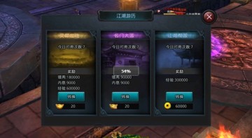 3、江湖游历(需要花费)绑定元宝或非绑定的,每日可以点一两下。