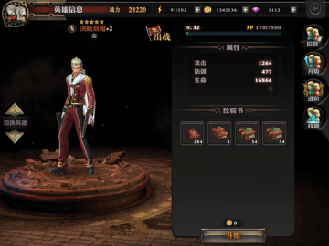 英雄升级会消耗经验书。每次升级会永久提升英雄的攻击、防御、生命。英雄的等级不能超过玩家自身的等级。
