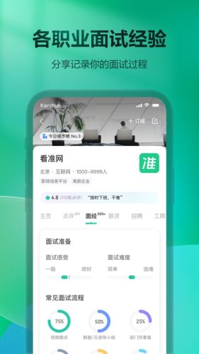 无论你是正在找第一份工作的应届生,还是准备跳槽的老鸟,看准都能帮你顺利通过面试,找到满意的工作!