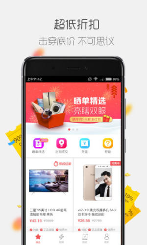 几折app是由北京大功合盛文化传播有限公司推出的一款手机购物软件,该款软件为用户带来了一个最优惠的购物平台,每天都会有超低折扣推出,包含了数码、家电、日用品等多种商品栏目,正品直供、品牌保证,没有最低、只有更低。