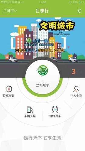兰州微公交E享行移动客户端APP应用主要功能是通过移动互联网客户端实现电动汽车租赁和电动汽车充电业务。