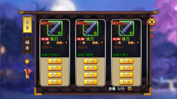 在装备功能中,可以进行武将装备的强化、洗练、锻造、等操作。