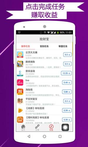 捡财宝,一款能赚钱的app,一款赚钱快的APP,一款能网络手机赚钱的软件。小伙伴们通过完成指定的小任务,来获得零钱奖励,天天红包让你秒赚。